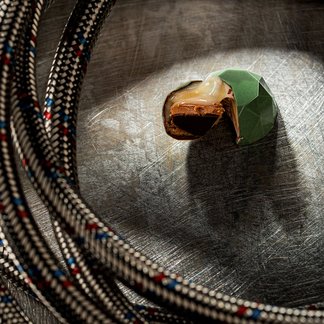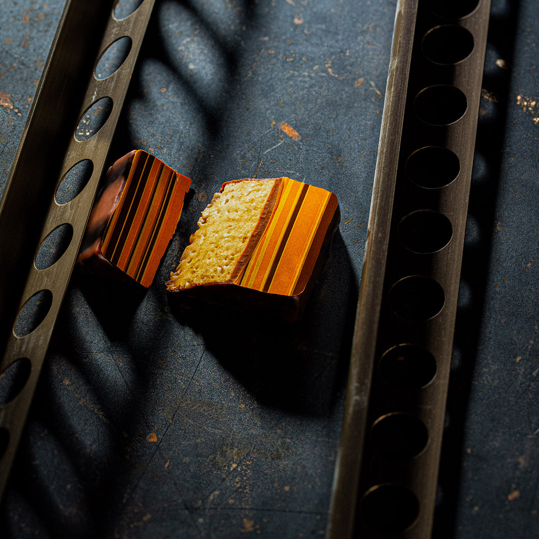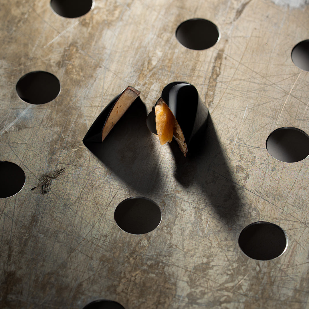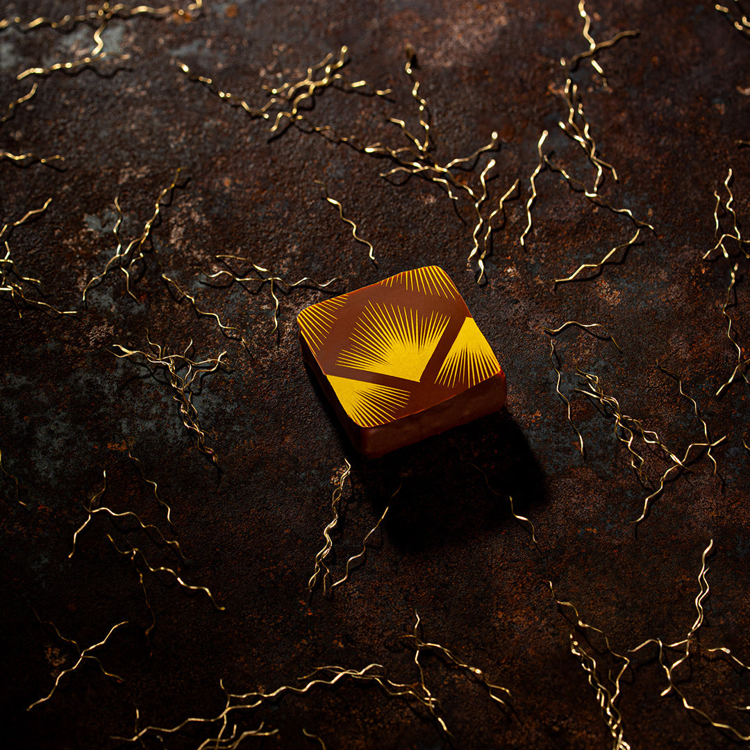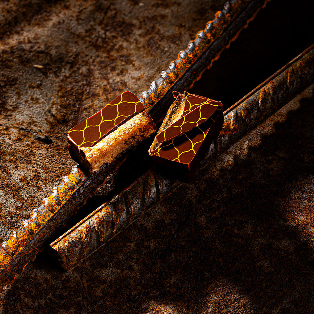 Pineapple jelly and caramelized coconut gianduja. With both milk and dark chocolate. We told you about opposites attracting, right?