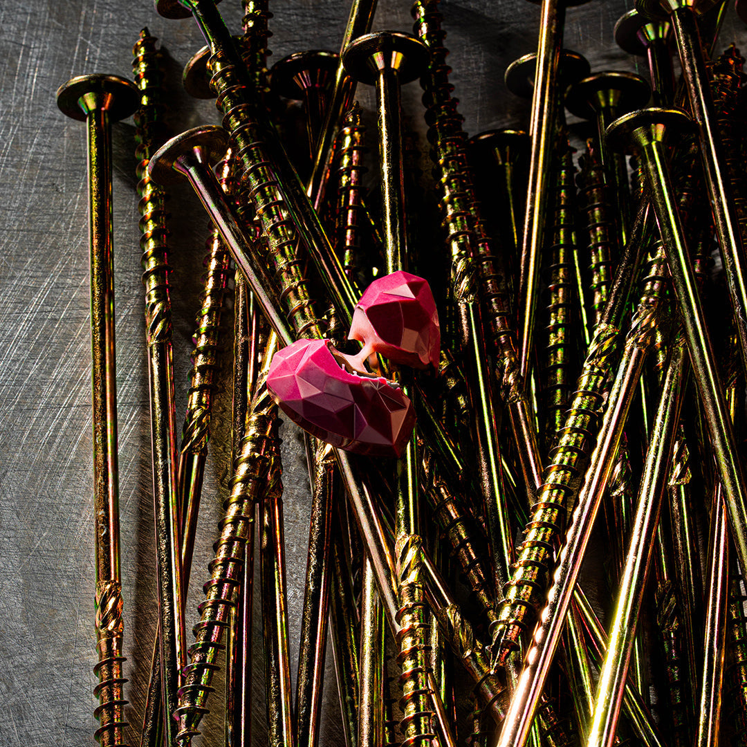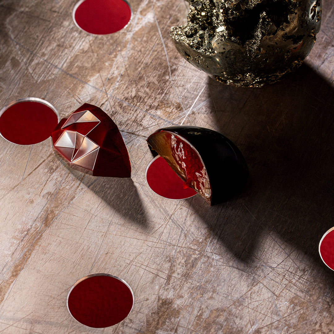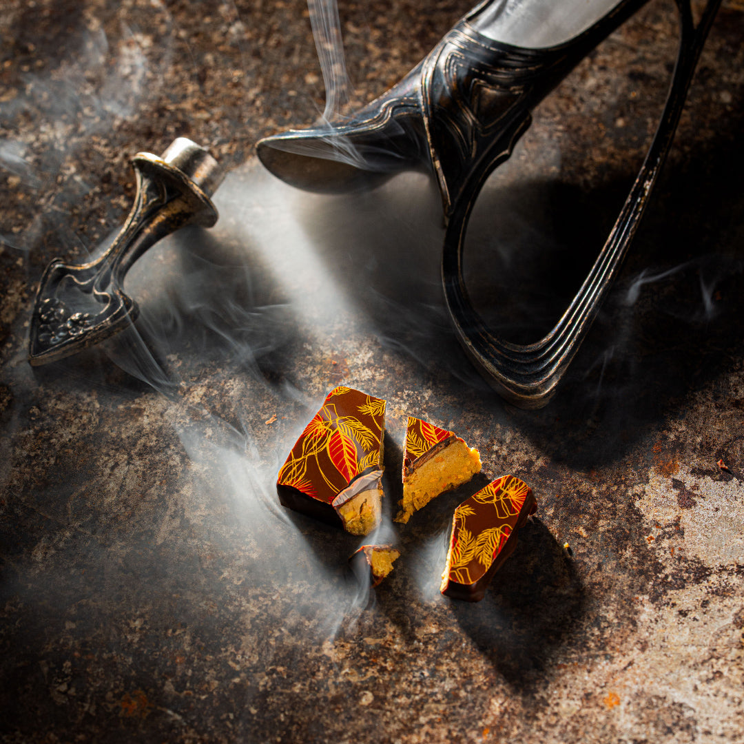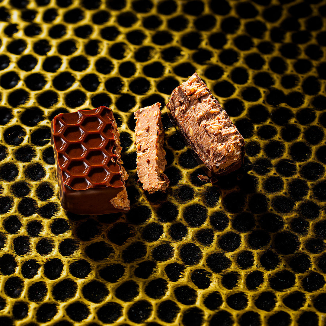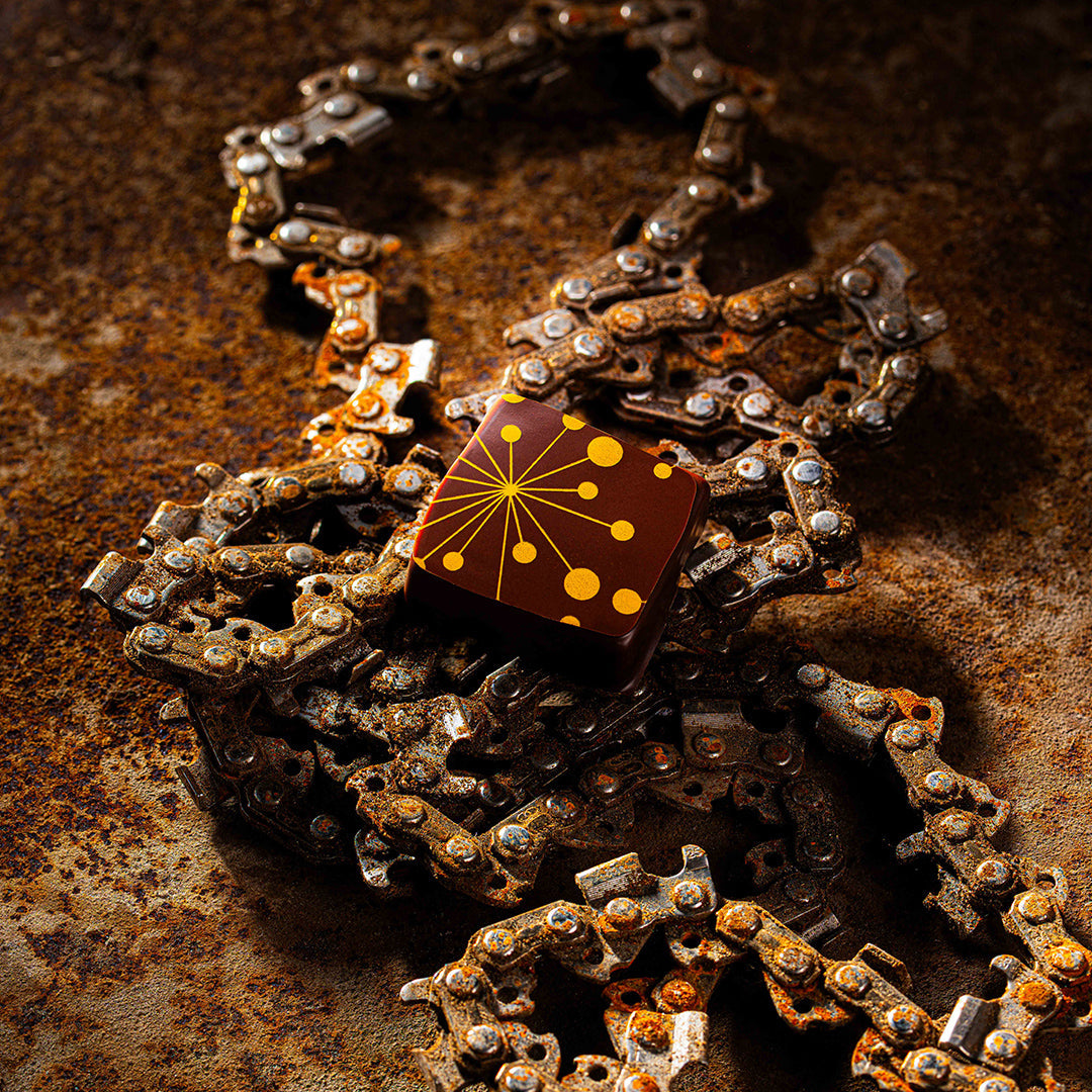Pineapple jelly and caramelized coconut gianduja. With both milk and dark chocolate. We told you about opposites attracting, right?